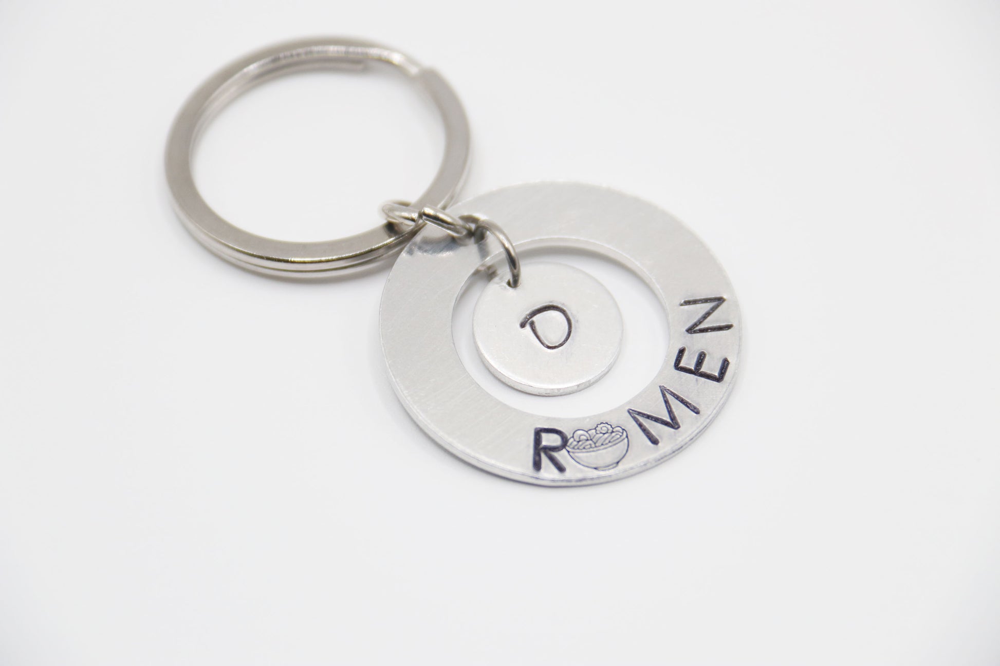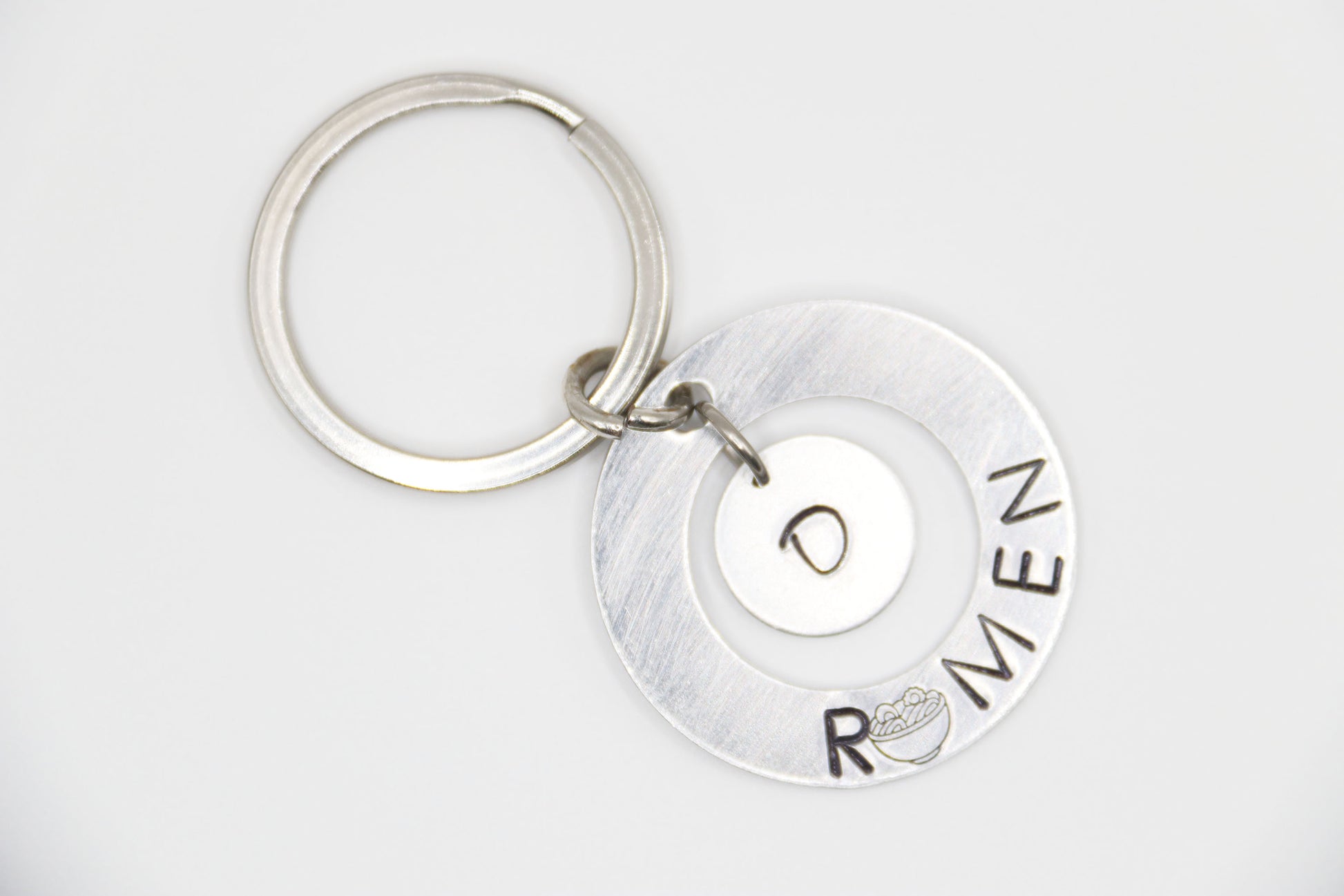 1 1/4" Large Circle Aluminum hand stamped Ramen with Ramen Bowl.